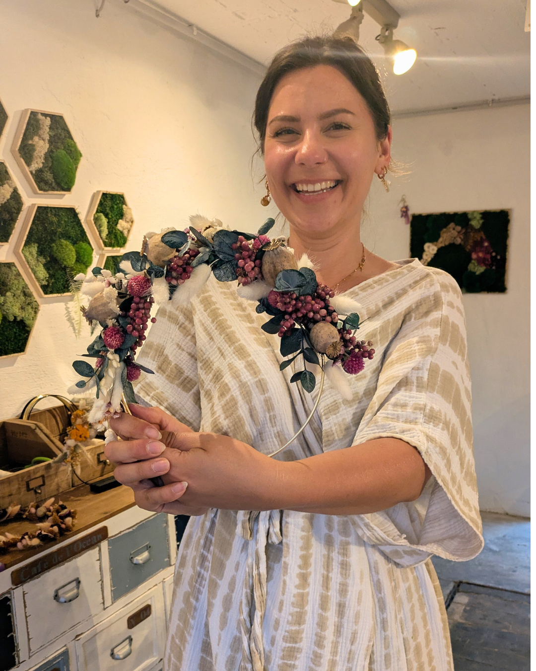 In diesem Trockenblumen-Workshop gestaltest du zwei wunderschöne Trockenblumenringe ganz nach deinem Stil! Dir steht eine große Auswahl an Trockenblumen in trendigen Farben und Sorten zur Verfügung – ideal für kreative Dekoideen, Geschenke oder einfach für dich selbst.